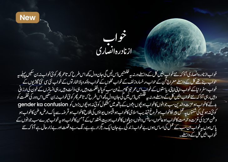 Articles and Poetry Home > Articles and Poetry 1. The Sahaba and their Relationship to the Quran2. Issues Faced by Children in Public Schools and their Solutions3. THE GREAT IMAM: IMAM ABU HANIFA4. HOW THE PROPHETS AND SAHABAH DEALT WITH ISLAMOPHOBIA5. THE PROPHET MUHAMMAD (SAW)- THE GREAT FATHER AND GRANDFATHER6. TIPS FOR A SUCCESSFUL MARRIAGE7. THE IMPACT ON HUMAN CONDUCT OF UNLAWFUL DEEDS (URDU)8. ABU HANIFAH9. HAWAAIYAN10. HAZRAT UM-E-HABIBA11. JO CHAHAY AP KA HUSUN KARISHMA SAZ KARAY12. KAMIYAB AZDAWAJI ZINDIGI KAY RAAZ13. MAHIK UL-KI TANBEEH14. MAIN KAFIR NAHI HOUN15. MERAY RAB KO NAHI PASAND16. TIPS FOR A HAPPY MARRIED LIFE17. ZAMEEN KHA GAI18. HOW CORONA CHANGED OUR LIVES (Urdu) | Noor Magazine 2021 Article19. AAG SEHRA MEIN LAGI (URDU)20. THE CONQUEST OF CONSTANTINOPLE (ENGLISH)21. TEHZEEBON KE NAYE UFQ (URDU)22. TAWHEED KI AMANAT SEENO MEIN HAI HAMAARE (URDU)23. SINGLE MOTHERS IN ISLAMIC HISTORY (ENGLISH)24. SEERAT KE DHANAK RANG (URDU)25. MALIK UL MULK KI TAMBEEH (URDU)26. KYA KHABAR THI (URDU)27. KON NAQSHE PA PAR CHALA (URDU)28. INGREDIENTS OF A GOOD MOTHER-IN-LAW (URDU)29. GHANEEMAT HAI SEHAT ALALAT SE PEHLE (URDU)30. ESTABLISHING JUSTICE IN EVERYDAY LIVES (ENGLISH)31. DIL PAY DASTAK (URDU)32. DEENEHAQ (URDU)Poetry